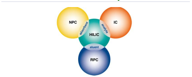 “HILIC Proporciona retenção dos analitos hidrofílicos altamente polares que são difíceis de reter em métodos RP utilizando combinações simples de fase celular e fase estacionária.”