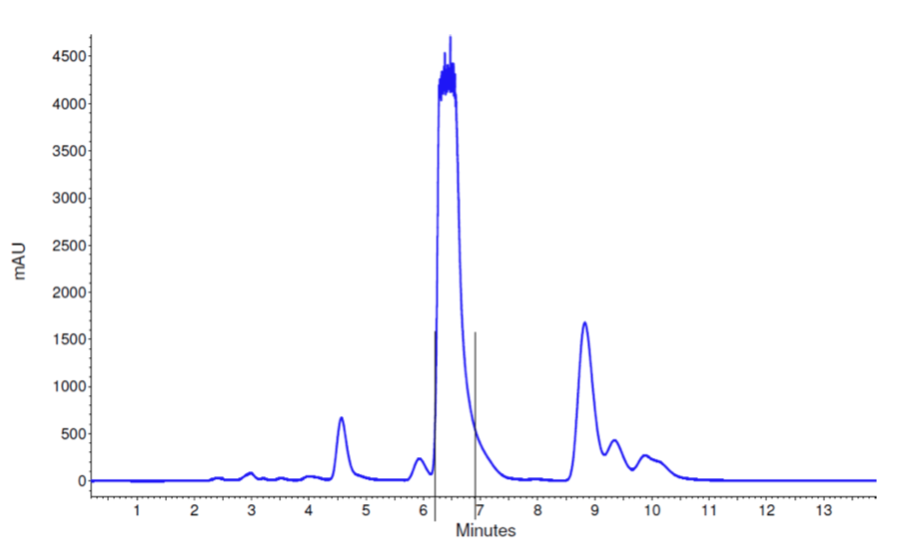 Para controlar a pureza desta fração, o próximo passo foi um método de HPLC de alta resolução usando a coluna de núcleo duro clássico BlueShell e o sistema compacto AZURA.